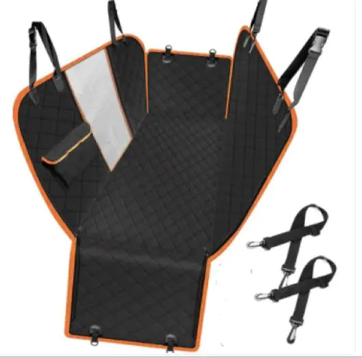 this premium pet seat cover offers a secure, comfortable space for your dog in the back seat. The visual mesh window provides airflow and helps reduce travel anxiety by allowing your dog to see you. Made from durable, waterproof fabric, it protects against dirt, hair, and scratches. Anti-slip backing and integrated seatbelt openings ensure stability and safety, while adjustable straps and side zippers make it easy to install and clean. Ideal for medium to large dogs, this cover is compatible with most vehicle models for stress-free travel!